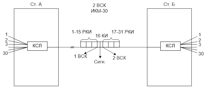 · использование одного и того же сигнального канала для передачи сигнальной информации в нескольких разговорных каналах. Каждый ВСК обслуживает свои 15 РКИ.