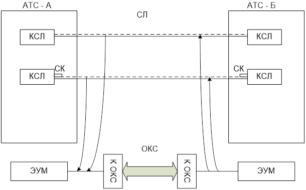 Суть ОКС заключается в следующем: вся сигнальная информация, передаваемая ранее по отдельным СЛ, концентрируется и образуется в одном месте с использованием специализированного аппаратного и программного обеспечения. И вся эта сигнальная информация далее передается в сети по специально выделенному общему каналу сигнализации.