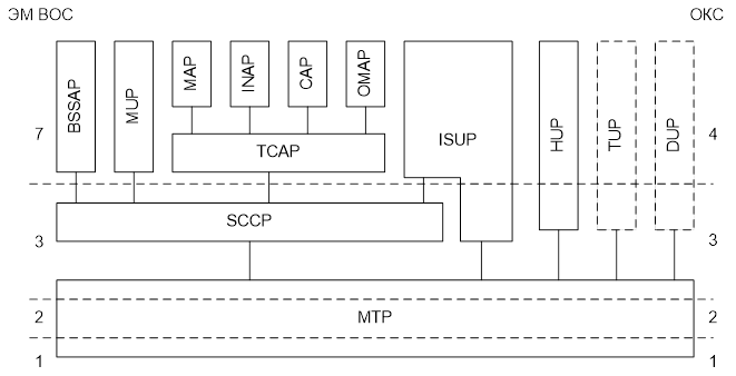 Рис. Соответствие уровней ОКС№7 и модели ВОС.