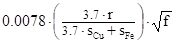 Однако в бронированном каротажном кабеле имеют место существенные потери на перемагничивание брони и магнитных элементов окружающей среды, точное количественное значение которых предусмотреть невозможно. Влияние этих потерь на расчеты коэффициентов затухания сигнала эквивалентно потерям на поляризацию изоляции кабеля (частотно зависимая потеря энергии). Учитывая последнее, в простейшем случае можно считать возможным введение в формулу расчета проводимости дополнительного коэффициента c- коэффициента приведения электромагнитных потерь к потерям в изоляции кабеля: