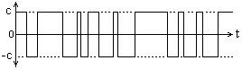 Телеграфный сигнал - это случайный процесс xk(t), представляющий собой последовательность прямоугольных положительных и отрицательных импульсов со случайными длительностями и детерминированными значениями амплитуд c и -с, причем перемены знака внутри любого интервала (t, t+t) происходят с интенсивностью a в случайные моменты времени и не зависят от процессов в смежных временных интервалах. Если считать случайной величиной телеграфного сигнала значение n - количество перемен знака внутри интервала t, то распределение вероятностей значений n будет описываться законом Пуассона: