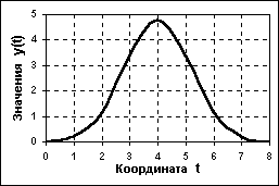 Рис. 1.2.1. Графическое отображение сигнала y(t) = 4.8 exp[-(t-4)2/2.8] |