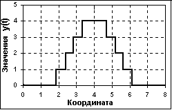 Рис. 1.2.4. Дискретно-аналоговый сигнал y(t) = Qk[4.8 exp(-(t-4)2/2.8)], k=5. |