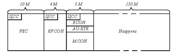 Обработка секционного заголовка заключается в выделении и соответствующей обработке байт секционного заголовка. Для определения местоположения байт заголовка в структуре синхронного транспортного модуля определяется начало его цикла, то есть осуществляется синхронизация начала цикла генераторного оборудования (ГО) приема под начало цикла принимаемого сигнала. Для этого используется приемник циклового синхросигнала (Пр.ЦС).