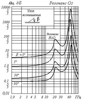 Величина Аа (β) зависит от длины пути радиоволн в атмосфере, которую можно характеризовать углом возвышения β. Путь, а следовательно, и поглощения будут минимальными при β = 90º, когда радиоволны пересекают атмосферу под прямым углом, и максимальными при β → 0. При определении затухания некоторую роль играет и высота станции над уровнем моря, так как характеризует длину пути луча в атмосфере.