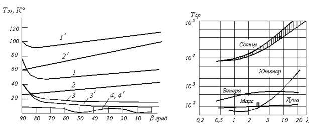 Зависимость Тср для Солнца и различных планет от длины волны приведена на рисунке 4.2.5