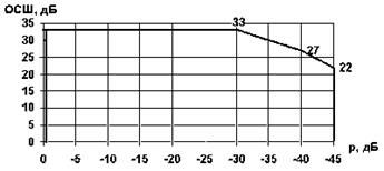 Для цифровых каналов ТЧ вводится дополнительная характеристика, которая оценивает шумы квантования. Эта характеристика задается в виде зависимости отношения сигнал-шум (ОСШ) от уровня сигнала (рисунок 3.2.8).