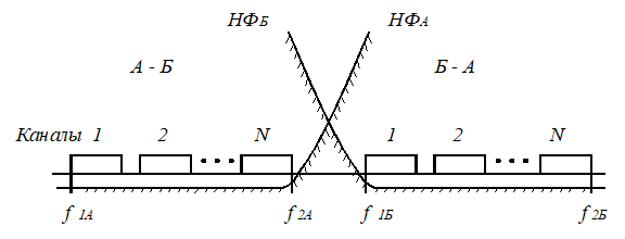 Рисунок 3.4.2 – Разделение спектров направлений передачи в двухполосных системах.