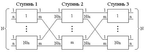 Рисунок 3.7.2 – Трёхступенчатая (трёхзвенная) коммутационная схема.