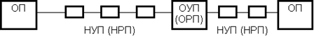 Многоканальные системы передачи с частотным и временным разделением каналов – это сложный комплекс технических средств, включающий в себя оконечную аппаратуру, устанавливаемую на оконечных пунктах (ОП), промежуточную аппаратуру, размещаемую в обслуживаемых (ОУП) или необслуживаемых (НУП) усилительных пунктах, а также линий связи (рисунок 3.2.2).