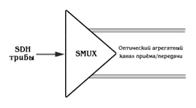 Мультиплексор. Мультиплексоры SDH выполняют как функции собственно мультиплексора, так и функции устройств терминального доступа, позволяя подключать низкоскоростные каналы PDH иерархии непосредственно к своим входным портам. Они являются универсальными и гибкими устройствами, т.е. кроме задачи мультиплексирования выполнять задачи коммутации, концентрации и регенерации. Это оказывается возможным в силу модульной конструкции SDH мультиплексора – SMUX, при которой выполняемые функции определяются лишь возможностями системы управления и составом модулей, включённых в спецификацию мультиплексора.