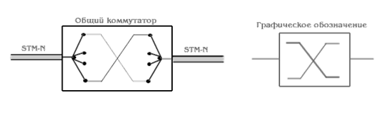 В общем случае приходиться использовать специально разработанные синхронные коммутаторы – SDXC, осуществляющие не только локальную, но и общую или проходную (сквозную) коммутацию высокоскоростных потоков и синхронных транспортных модулей STM-N (рисунок 6.1.5). Важной особенностью таких коммутаторов является отсутствие блокировки других каналов при коммутации, когда коммутация одних групп TU не накладывает ограничений на процесс обработки других групп TU. Такая коммутация называется неблокирующей.