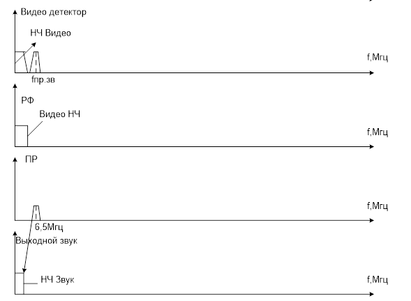 Чтобы не возникали низкочастотные искажения АЧХ, ФПЧ должен иметь звуковой уступ шириной 200-300 кГц для предотвращения попадания ЧН сигнала в видеосигнал.