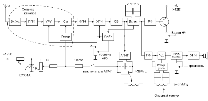 ФПЧ – фильтр промежуточной частоты (ФСС – в старых моделях ТВ)