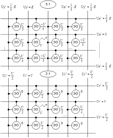 В случае схемы 3:1 и 2:1 приходится динамичный режим двухкоординатной матричной адресации. В динамичном режиме выборка элементов отображения производится одним из следующих способов: