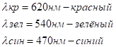 5) Цвет – это ощущение, вызываемое в органе зрения видимыми лучами света. В колориметрии цвет определяется 3 величинами: яркость, цветовой тон, насыщенность. Цветовой тон объекта связан с составом излучения. По цветовому тону можно судить об окраске объекта. Отдельные участки видимого спектра различаются по окраске, т. е. вызывают ощущения разного цвета, поэтому цветовой тон удобно характеризовать длиной волны спектрального излучения.