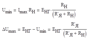 Если считать EНГ=1 о.е., то ∆Umax<0.1(10%), то есть не опасно для потребителей. По этому в СЭЭС постоянного тока расчеты на ∆Umax не производятся.