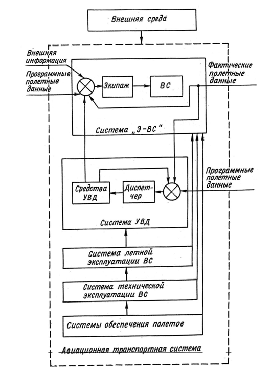 Структурно АТС включает следующие элементы (рис. 1.1): экипаж, ВС, систему летной и технической эксплуатации, систему обеспечения полетов, систему УВД. Применяя далее системный подход к рассмотрению проблемы безопасности полетов, отдельные элементы АТС или их сочетание, в свою очередь, можно рассматривать как самостоятельную систему, например «Экипаж - ВС» («Э - ВС»),