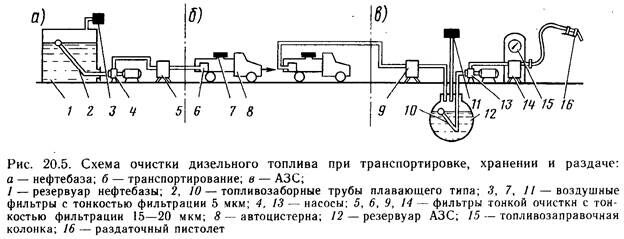 хранении и раздаче дизельное топливо надо тщательно очищать. Баки автомобилей периодически следует промывать.