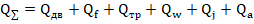 где QΣ — суммарный расход топлива на движение автомобиля; Qлв-- расход топлива на преодоление .механических, тепловых и насосных потерь в двигателе; Qf — расход топлива на преодоление сопротивления качению; Qw, - расход топлива на преодоление аэродинамического сопротивления; QTp -- расход топлива на преодоление механических потерь в трансмиссии; Qj — расход топлива на преодоление сил инерции автомобиля; Qa — расход топлива на преодоление подъемов и спусков.