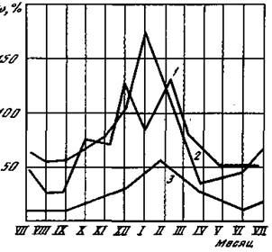 Ухудшения условий работы агрегатов и систем автомобиля при низких температурах окружающего воздуха сказываются на распределении отказов в течение года (рис. 1.1) и соответствующем изменении трудоемкости их устранения (рис. 1.2).