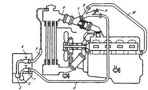 Рис. 1.8. Схема устройства подогрева двигателей горячей водой или паром