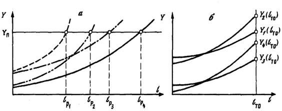 а - наработки (l р1- l р4) при фиксации Yп ; б- параметра технического состояния (Y1 (lто)-Y4 (lто)) при фиксации наработки l