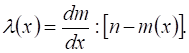 8. Важным показателем надежности является интенсивность отказов λ(x) - условная плотность вероятности возникновения отказа невосстанавливаемого изделия, определяемая для данного момента времени при условии, что отказа до этого момента не было. Аналитически для получения λ(x) необходимо элементарную вероятность dm/dx отнести к числу элементов, не отказавших к моменту х, т.е.