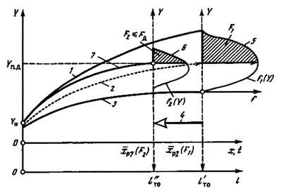 , то значительная часть изделий (F1 на рис. 5.3) откажет при наработке х < l`ТО, так как у них Yi > Yп д.