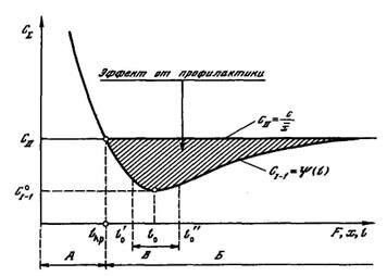 Зона А - зона экономической нецелесообразности профилактической стратегии, так как СI-1 > СII. Это также внеэкономическая зона, используемая при определении