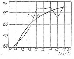 Сначала повышение оснащенности АТП ведет к заметному росту коэффициента технической готовности αт, а когда стоимость базы достигает 45—50% стоимости основных фондов, его рост становится неощутимым.