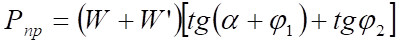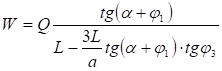 Силу тяги привода W, необходимую для обеспечения силы зажима Q можно определить по формуле, приняв, что tgφ2 = 0, так как клин 3 под действием трех одинаковых сходящихся в его центре сил как бы плавает, не прижимаясь к направляющим: