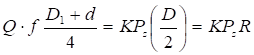 где К=1,5-2,0 - коэффициент запаса; Рz - составляющая сила резания, н ; D - наружный диаметр поверхности обрабатываемой детали, мм; D1 - наружный диаметр быстросменной шайбы, мм; d - диаметр цилиндрической установочной части оправки, мм; f=0,1-0,15 - коэффициент трения.