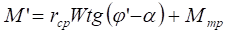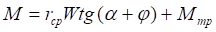 где - rcp средний радиус резьбы (можно принимать rcp =0,45d); α - угол подъема резьбы (для резьб от М8 до М52 а изменяется от 30 10’ до 10 51’); φ - угол трения в резьбе;