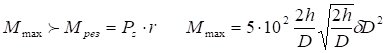 где h, D, δ выражены в мм.