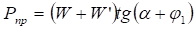 где W - потребная сила зажима заготовки, Н; W’ - сила сжатия лепестков цанги для выбора зазора между ее губками и заготовкой, Н; α - половина угла конуса цанги, град; φ1 - угол трения в стыке конических поверхностей цанги и корпуса, град.