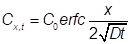 Если равновесие на поверхности достигается за время, меньшее чем длительность диффузии, то поверхностную концентрацию можно считать постоянной. Поэтому в большинстве случаев распределение примесей при диффузии из газовой фазы описывается функцией дополнения к интегралу ошибок. Распределение концентрации примеси по глубине диффузионного слоя в момент времени t описывается выражением:
