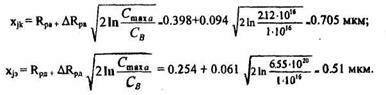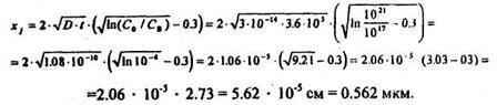 6. Определим глубину залегания p-n-перехода после проведения разгонки по формулам