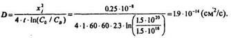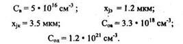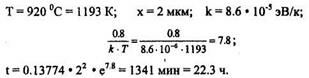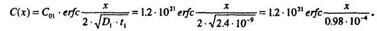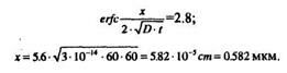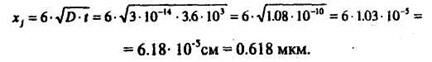 Пример 3. Переход эмиттер-база формируется диффузией фосфора в подложку p-типа в течение t = 1 ч при Т = 1000 °С; концентрация атомов Р на поверхности Si поддерживается на пределе растворимости в твердом состоянии. Предполагая, что концентрация примеси в базе равна концентрации примеси p-типа в исходном материале (или 10|7 см-3), найти глубину перехода эмиттер-база.