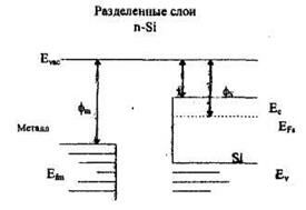 Для расчета характеристик тонкопленочных контактов металл-полупроводник необходимо знание работы выхода металла и полупроводника.
