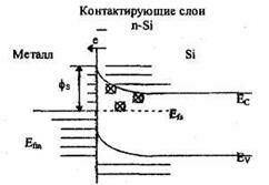 Степень легирования слоя полупроводника Nd - для n-типа и N, для p-типа влияет на механизм переноса носителей зарядов (электронов и дырок соответственно) в контакте. Различают следующие механизмы переноса носителей через контакт: