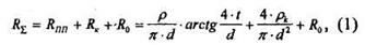 Расчет RK ведется применительно к омическим контактам к областям базы n-p-n -планарных транзисторов с Na =1018 -1019 см-3 и к областям эмиттеров (коллекторов) с Nd >1020 см-3.