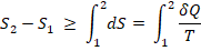 Для конечного процесса, равное интегралу от начального до конечного, количество теплоты на температуру здесь будет равенство или больше.