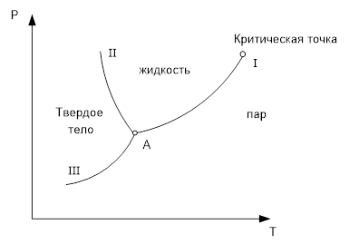 т.А – тройная точка равновесия трех фаз: жидкой, твердой и газообразной.