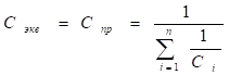 При наличии в системе “n” последовательно соединенных упругих элементов, имеющих различную жесткость и движущихся с одинаковыми скоростями, они могут быть заменены одним элементом с эквивалентной (приведенной) жесткостью исходя из соотношения