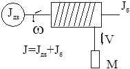 В тех случаях, когда влияние упругих связей незначительно или при решении задачи ими можно пренебречь, механическая часть электропривода представляется простейшей расчетной схемой (см. рис.) – жестким приведенным механическим звеном, т.е. многомассовая механическая часть эл.привода с моментами инерциями J1 ,J2 и т.д. заменяется действием одного момента инерции Jnp, приведенного к расчетной скорости. Суммарный приведенный момент инерции эл.привода в этом случае определяется как