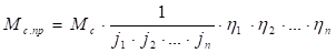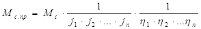 Приведенные выше формулы для определения приведенных Mc, Fc не учитывают КПД отдельных передач или механизма в целом.