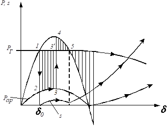 | Рисунок 9.2 – Выпадение из синхронизма и переход на асинхронный ход синхронной машины |