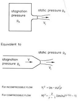 где Pо - заторможенное или полное давление , соответствует давлению, полученному когда поток приведен в состояние покоя без трения или без потерь, член 0,5V2 известен как давление динамическое или динамическая добавка. Трубка pitot делает запись давления торможения принимая во внимание, что давление у стенки, параллельной потоку, делает запись статического давления. Использование давления торможения кое-что вроде бухгалтерского упражнения - оно указывает давление, которое является достижимым в движущемся потоке. Это иллюстрировано на рис. 6.1. Аналогия, которая является иногда полезной, может быть взята из гидравлической и механической систем: статическое давление аналогично потенциальной энергии, а динамическое давление аналогично кинетической энергии.