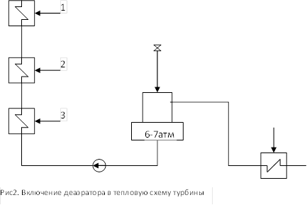 1) Деаэраторы питательной воды (6-7 атм) устанавливаются в рассечку между группой ПВД и ПНД.